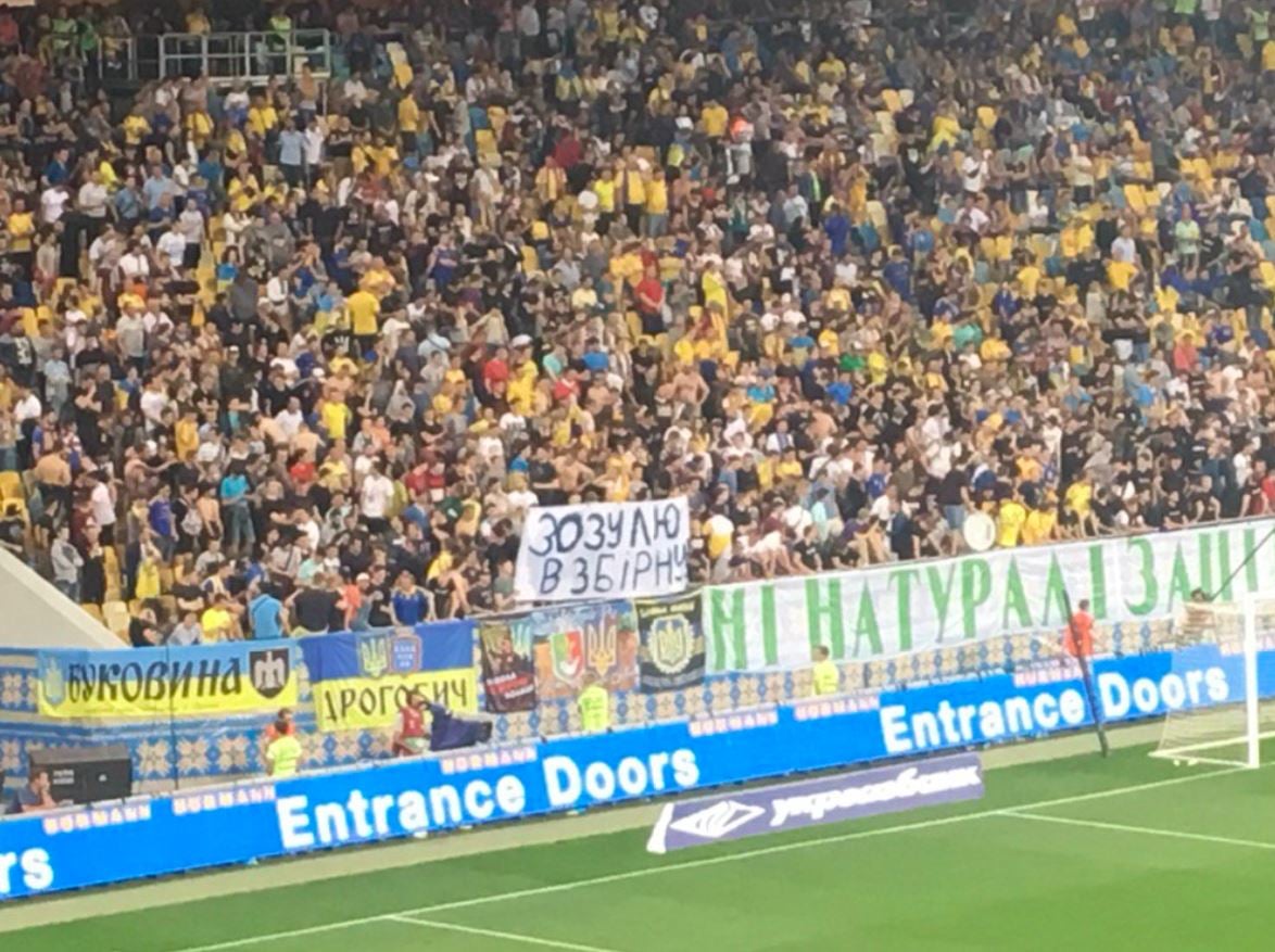 ###Украинские фаны вывесили баннер «Зозулю в сборную» на матче с Сербией ###
